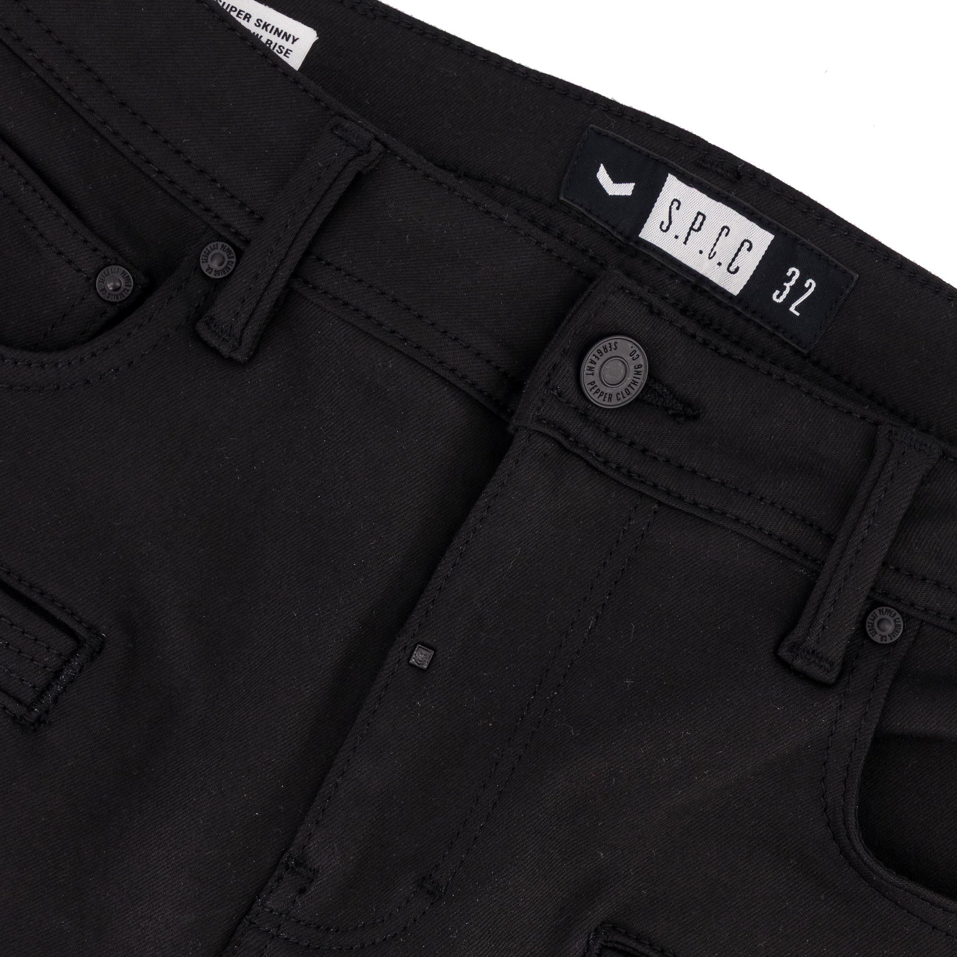 Turn heads with the Night Vision Super Skinny Trench Fit, crafted from premium ever-black denim with Matte black hardware and leather accents, adding an edgy attitude, making this a standout piece in any wardrobe.