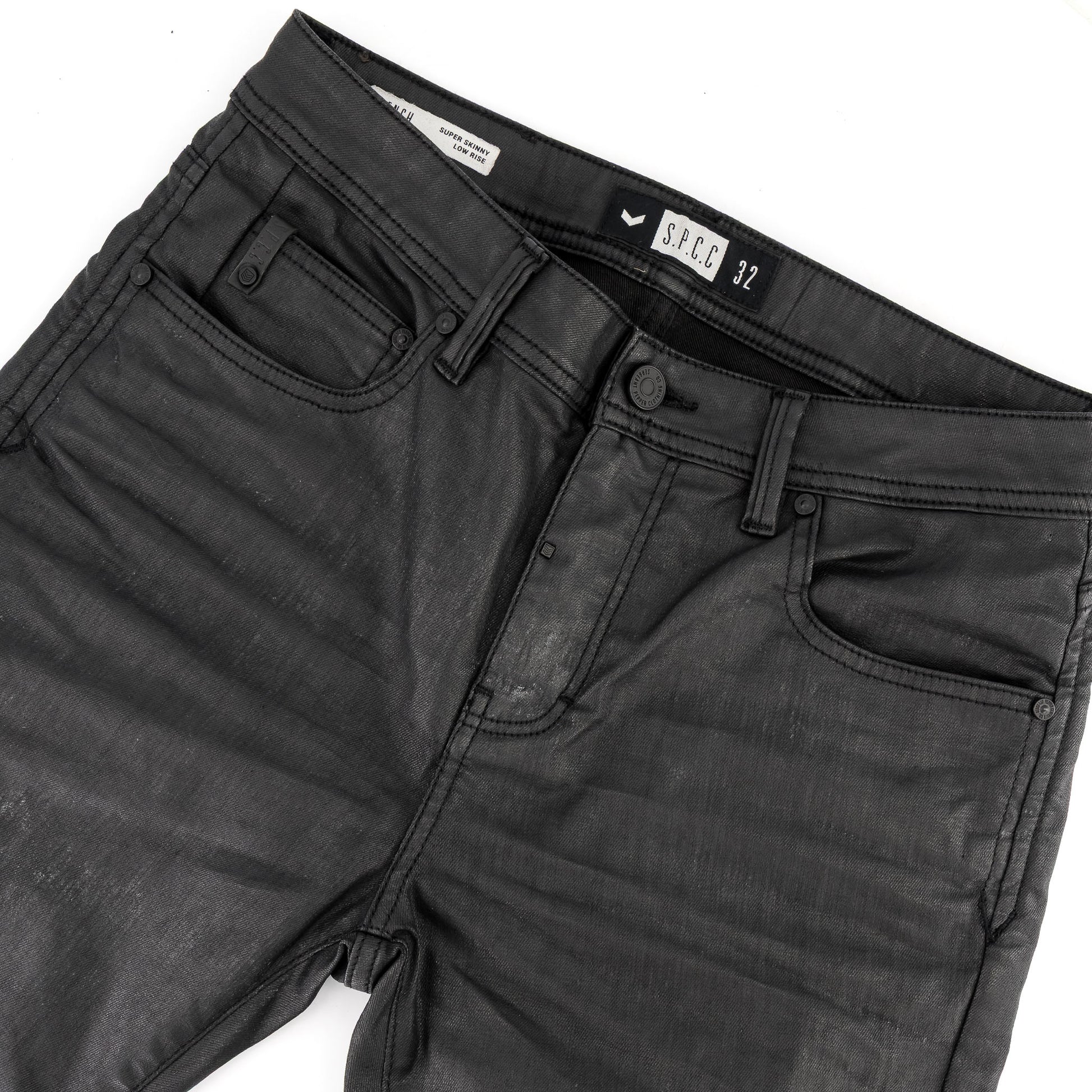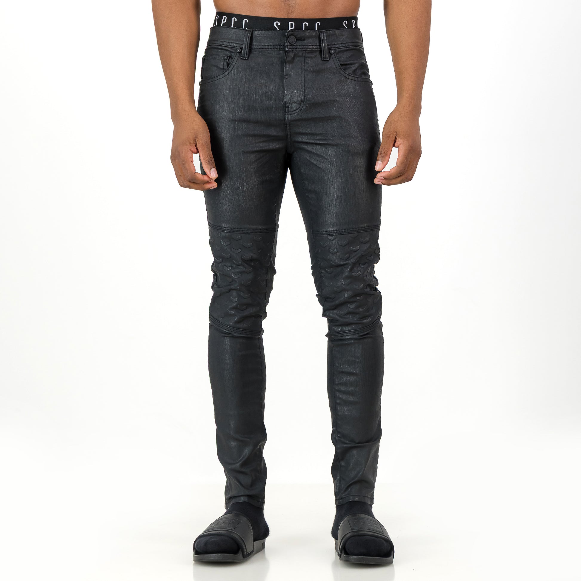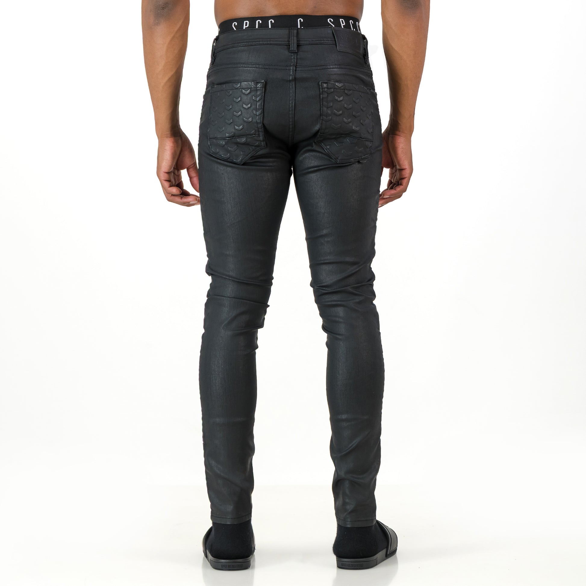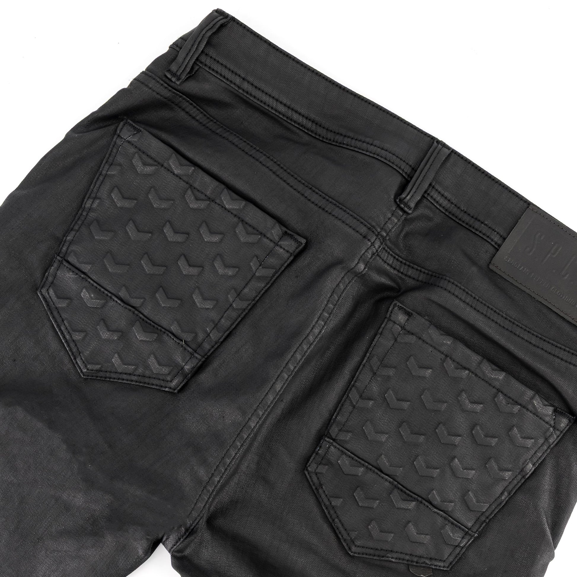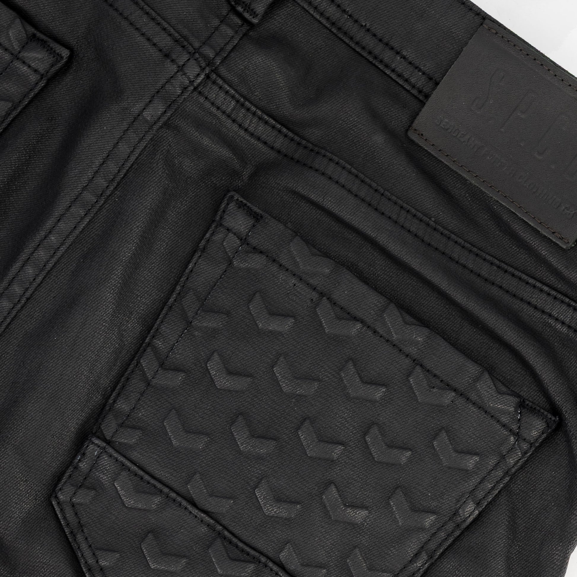 Command attention with the Precipe Jean—engineered for impact. Crafted from premium stretch wax-coated indigo denim, this statement fit blends bold design with functional edge. Embossed chevron details at the knees and back pockets bring a tactile finish to an already powerful silhouette.
