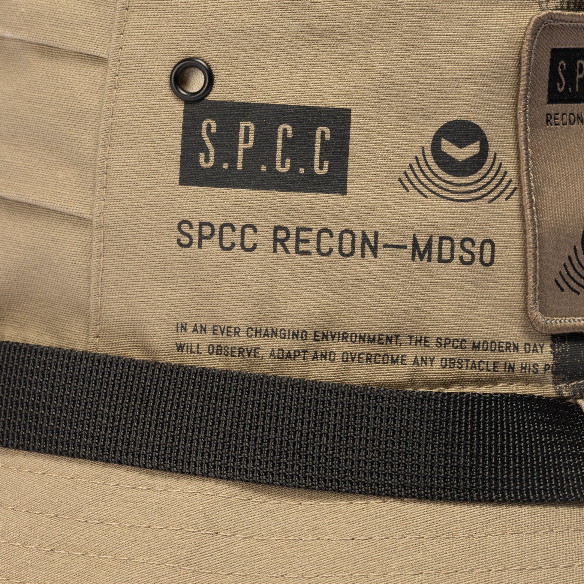 • SPCC woven badge and print detail