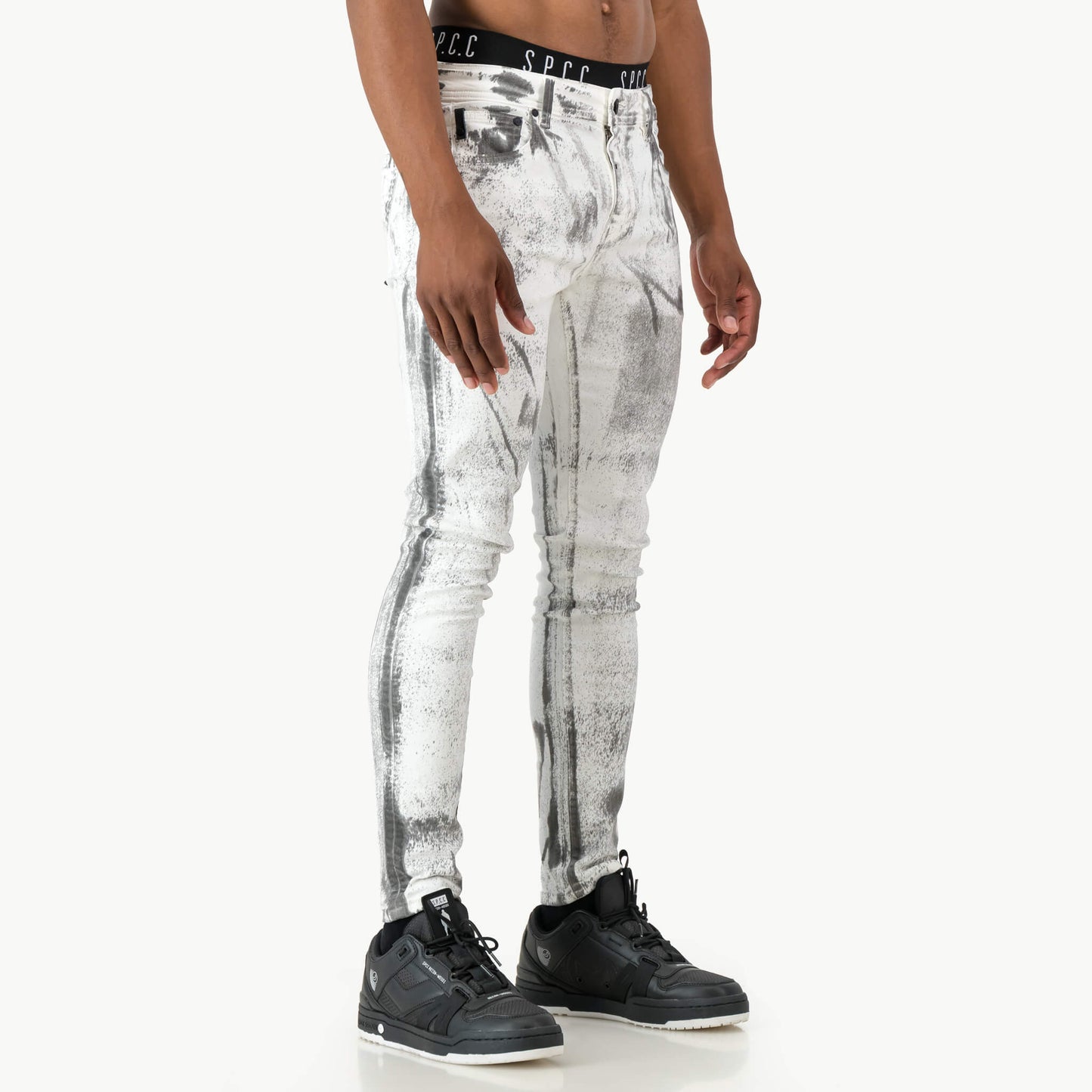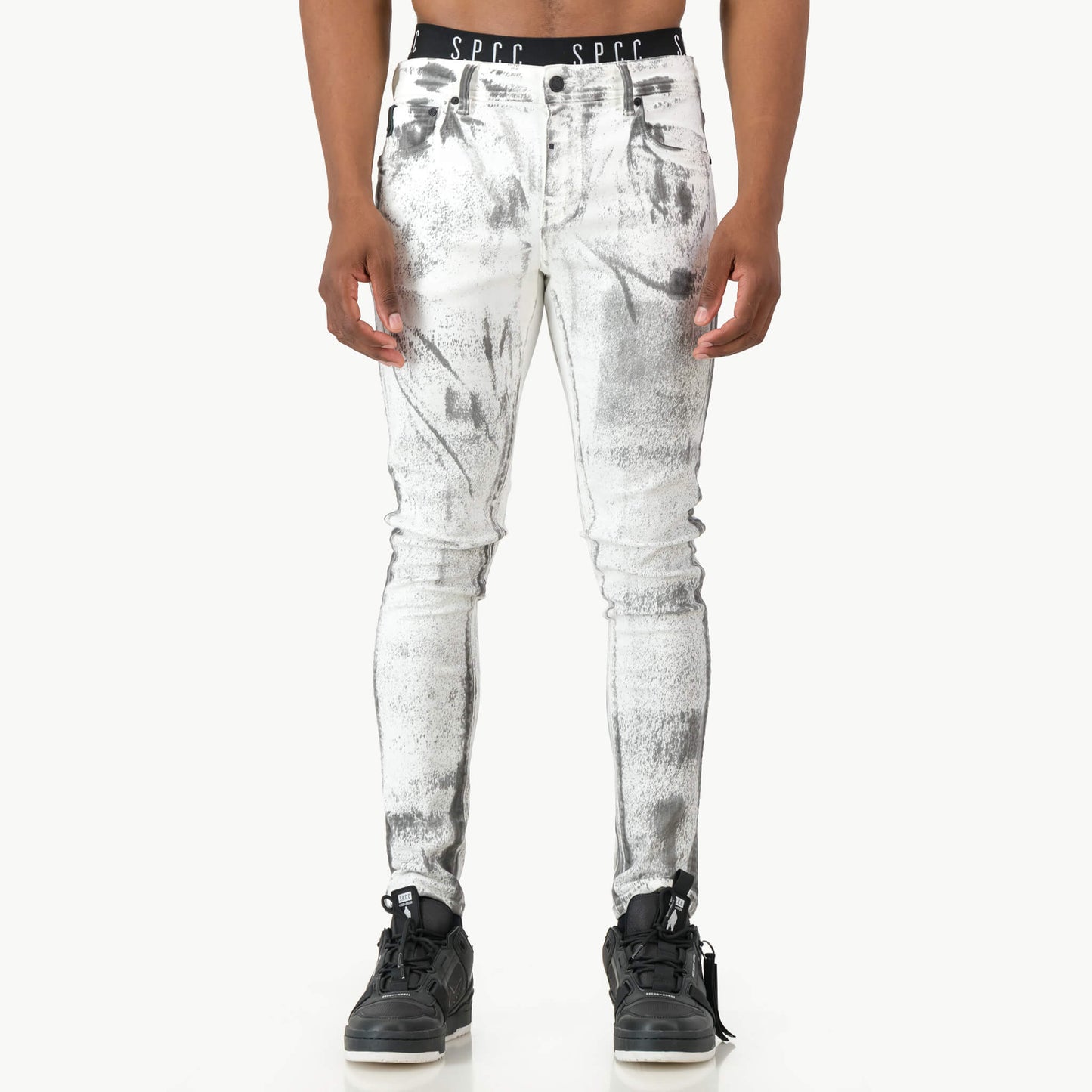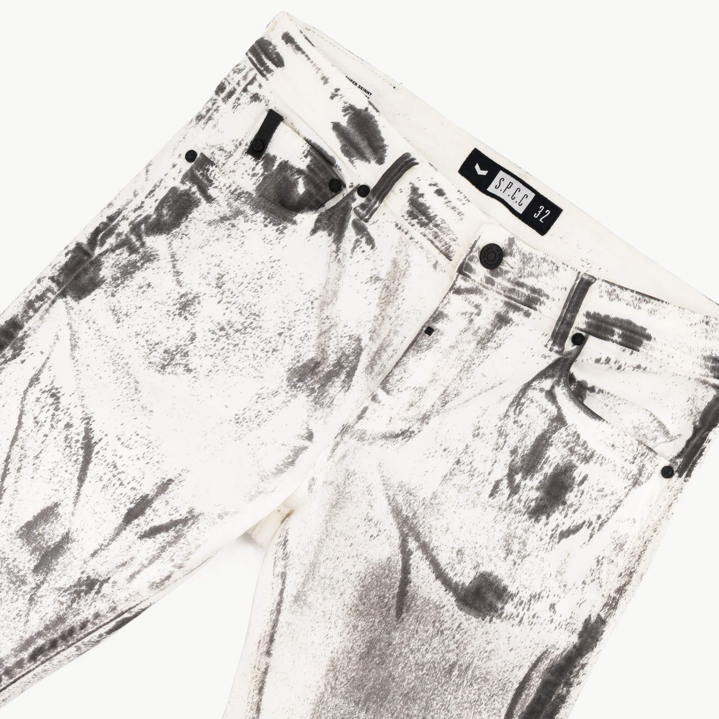 Make a bold statement with the Fracture Super Skinny Trench Fit, designed for those who dare to stand out. Crafted from premium stretch denim, this fit boasts an edgy, inconsistent paint splatter that adds a rebellious flair. With matte black hardware, leather accents, and signature detailing, it’s the perfect blend of attitude and sophistication.